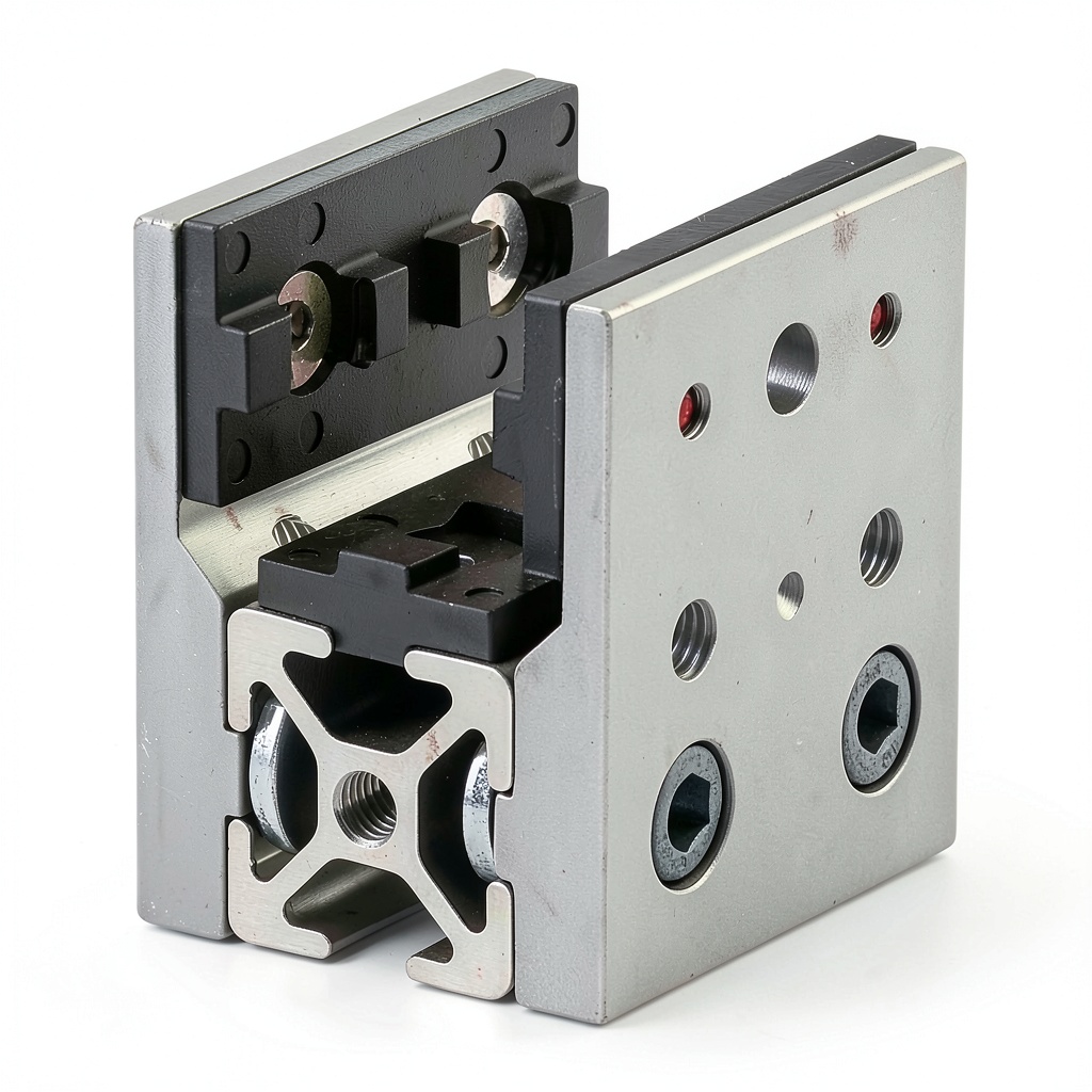 - T-slotted aluminum unibearing assembly for seamless integration with 25 series extrusions
