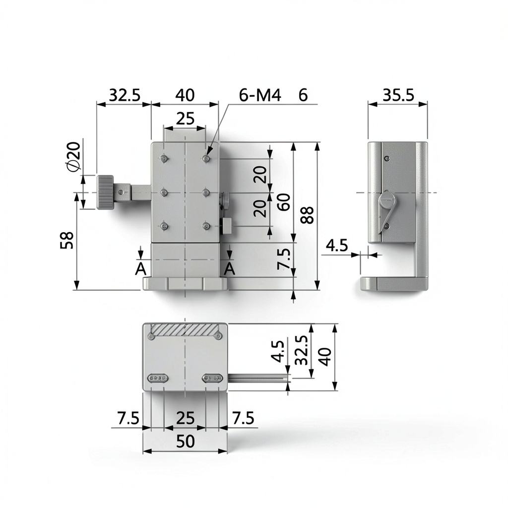 - Dovetail guide with gear rotation handle for high accuracy and smooth movement
